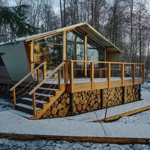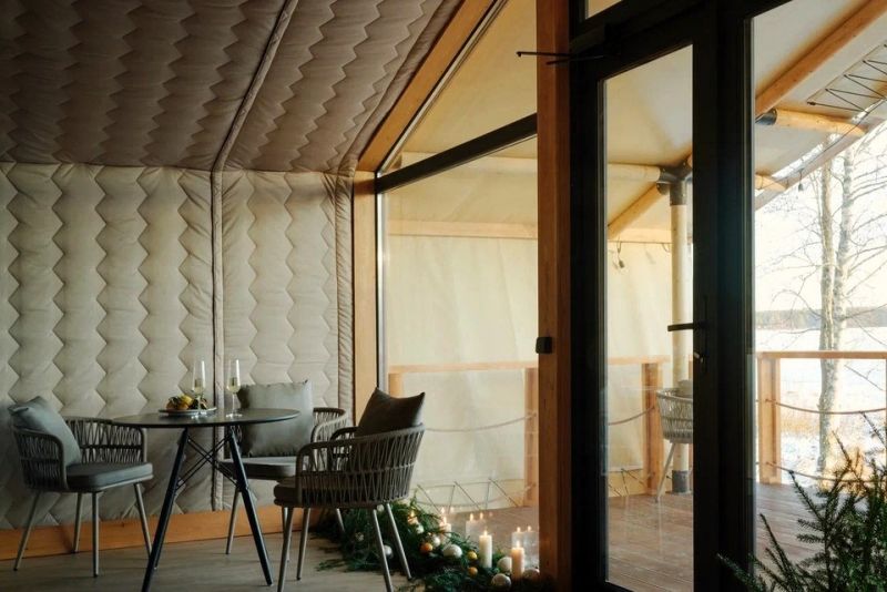 Гостей ожидают комфортабельные лоджи, романтичные шатры и элегантный гостевой дом. Каждый вариант размещения предлагает свои неповторимые условия для отдыха – у кромки воды или в окружении лесных деревьев. Не упустите шанс отдохнуть в фито-купели с подогревом, любуясь захватывающими пейзажами.